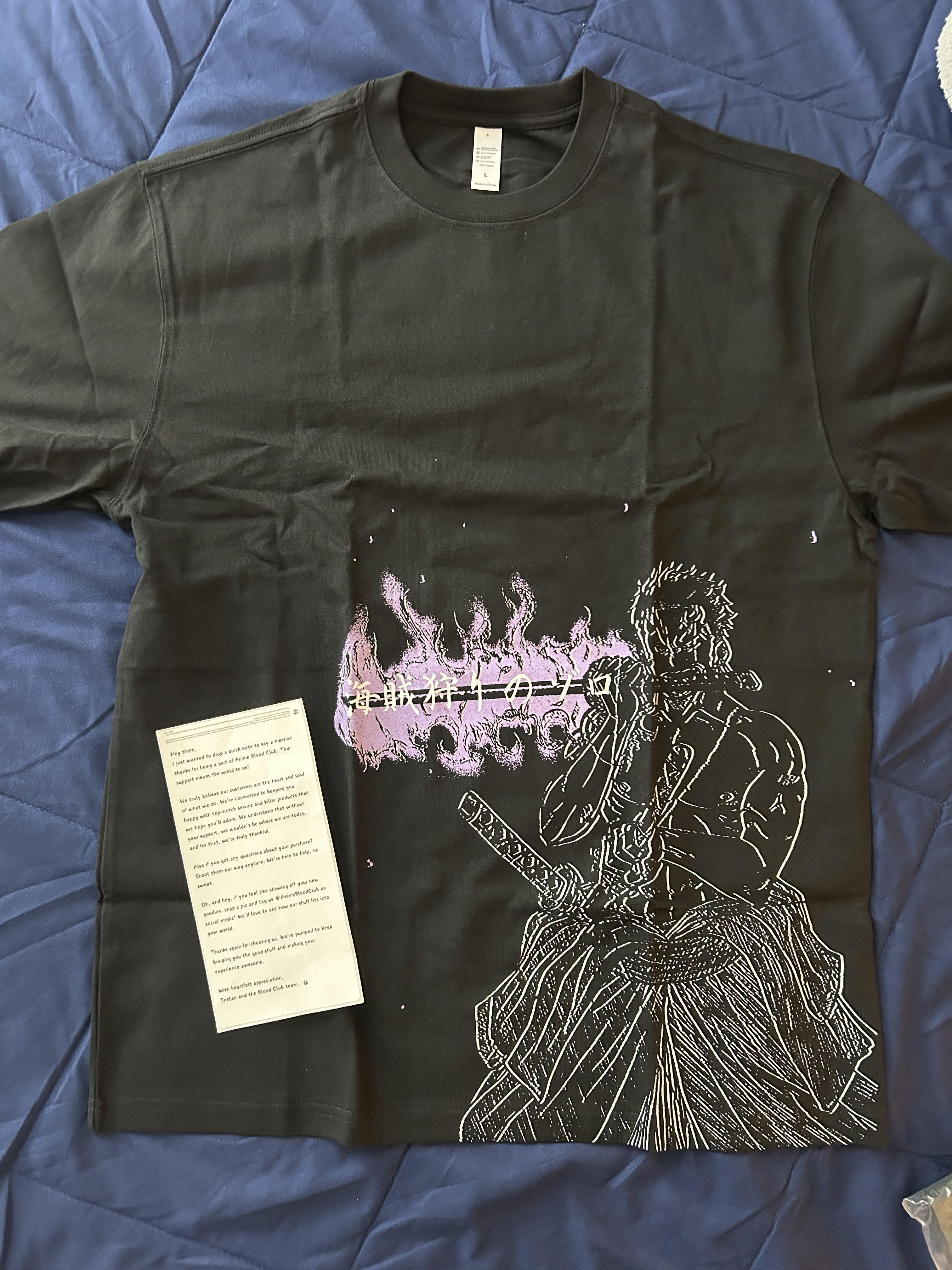I previously bought two of the Gojo shirts so why not buy two of my favorite One Piece character shirt, ZORO! I have no regrets!